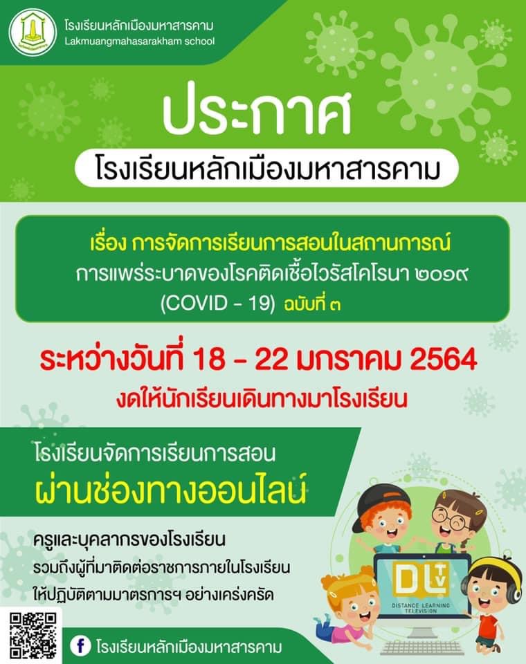 >>ประชาสัมพันธ์ ประกาศโรงเรียนหลักเมืองมหาสารคาม เรื่อง การจัดการเรียนการสอนทางไกลในสถานการณ์การแพร่