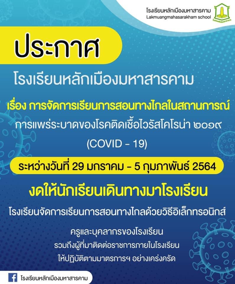 ▶️▶️ประกาศโรงเรียนหลักเมืองมหาสารคาม เรื่อง การจัดกิจกรรมการเรียนการสอนทางไกลในสถานการณ์การแพร่ระบาด