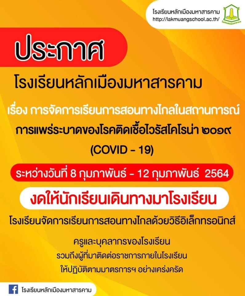 ประกาศโรงเรียนหลักเมืองมหาสารคาม เรื่อง การจัดกิจกรรมการเรียนการสอนทางไกลในสถานการณ์การแพร่ระบาดของโ