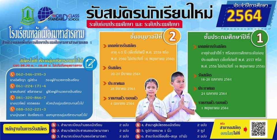 >>ประชาสัมพันธ์การรับสมัครนักเรียน ปีการศึกษา 2564
